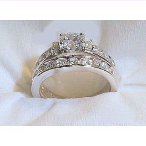 Edwin Earls offers this exquisite engagement wedding ring set. Pictures usually do not do this ring set justice. The center stone is really a round brilliant cut 0.85 ct stone using a 4 prong setting with .15ct stones on either side. 4 smaller round brilliant channel set stones on them with the band. The matching wedding band has channel set round stones. A classic look for today's jewelry. The whole ct. weight of the set is approx. 1.50 ct. so beautiful therefore believable. This ring set is made of some of the finest materials available. The stones are AAA quality simulated diamond stones that are guaranteed never to crack, break or lose their luster. The ring is reputable .925 sterling silver with white gold finish which is the same finish that's utilized on fine white gold and platinum jewelry. This ring would cost a large number of dollars whether or otherwise this were natural diamonds. You'll have the ability to possess the same look for a great deal less when selecting our jewelry.