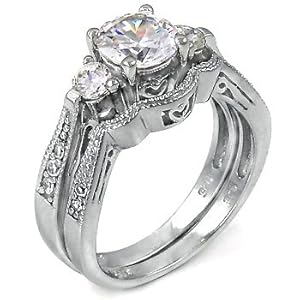 The details of Sterling Silver Cubic Zirconia CZ Wedding Engagement Ring Set Sz 9